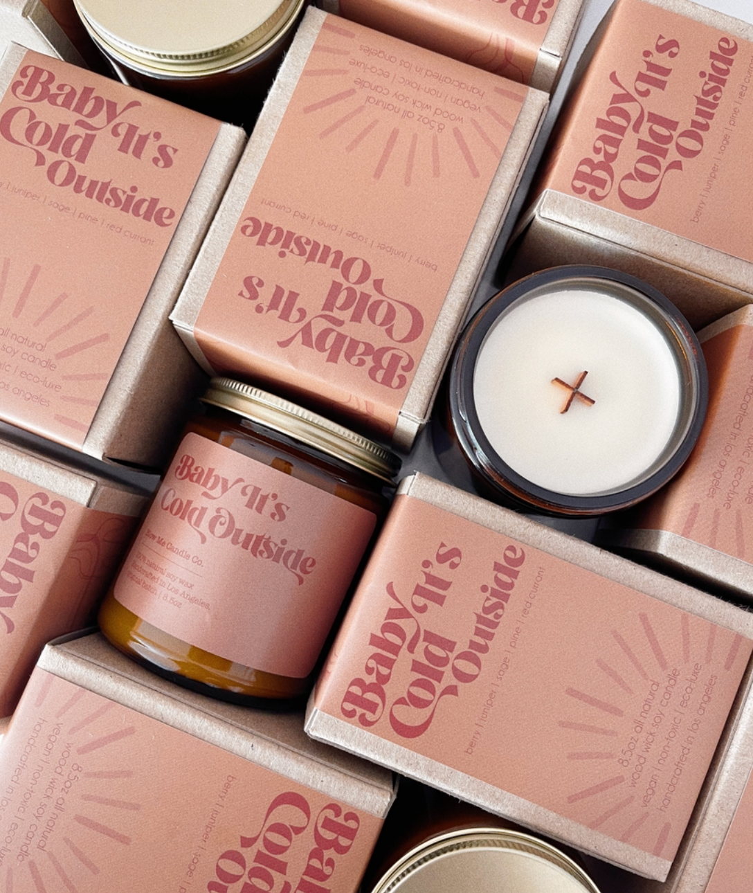 8.5oz a soy candle with a wood wick. Approximately 60 hours of burn time.