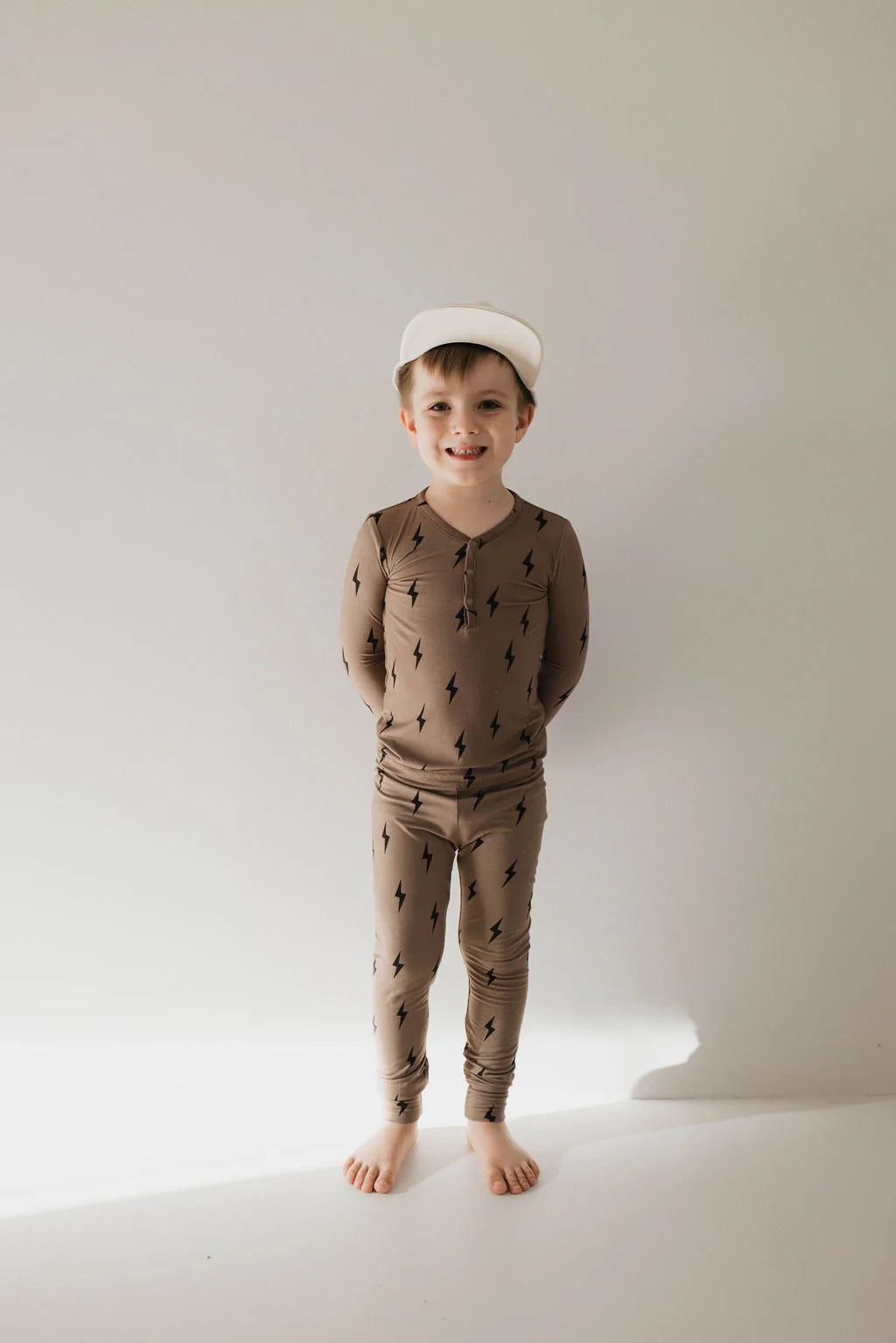 Black + Brown Lightening Bolt 2 Piece PJ Set