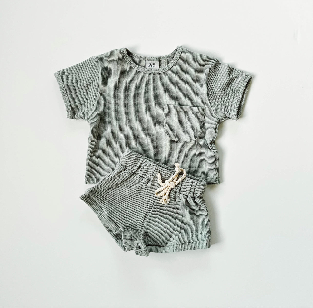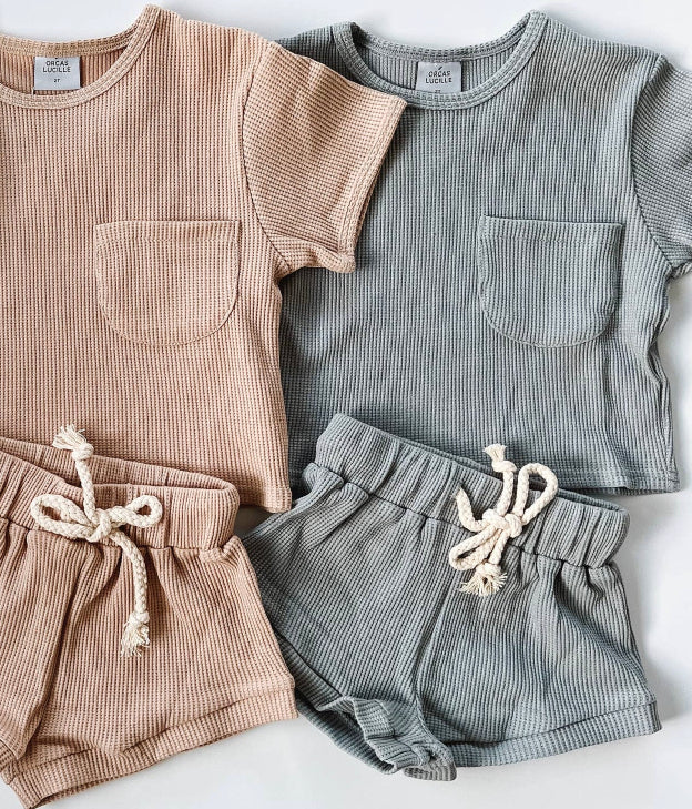 A playful, comfy set. The shorties have an elastic waistband to allow for a comfortable fit. We love this simple yet stylish set, perfect for any little baby boy or girl.