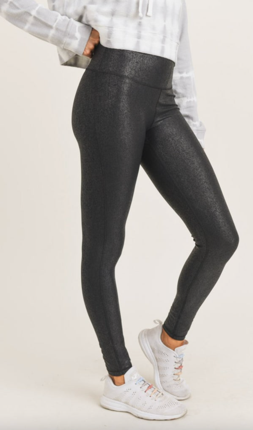These high-waisted leggings feature foil print in Crackle Glaze for a unique pattern.