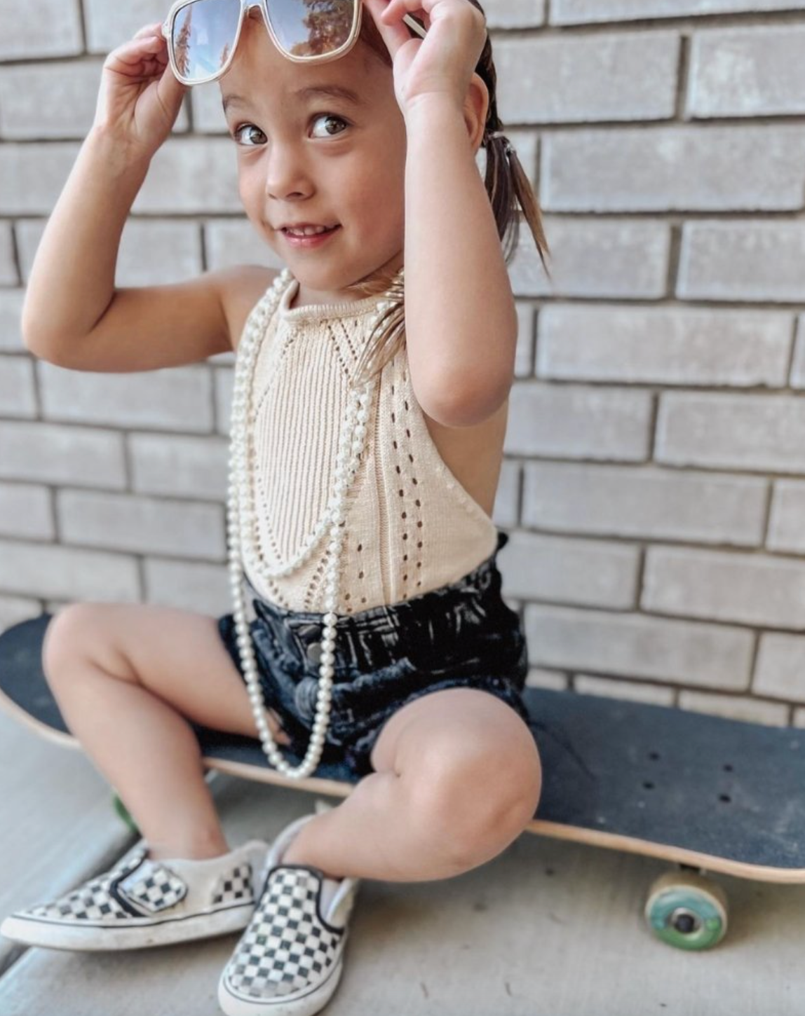 The Drake Crochet Halter Onesie is soft, sweet, and FULL of beautiful detail...because your little darling deserves only the best!