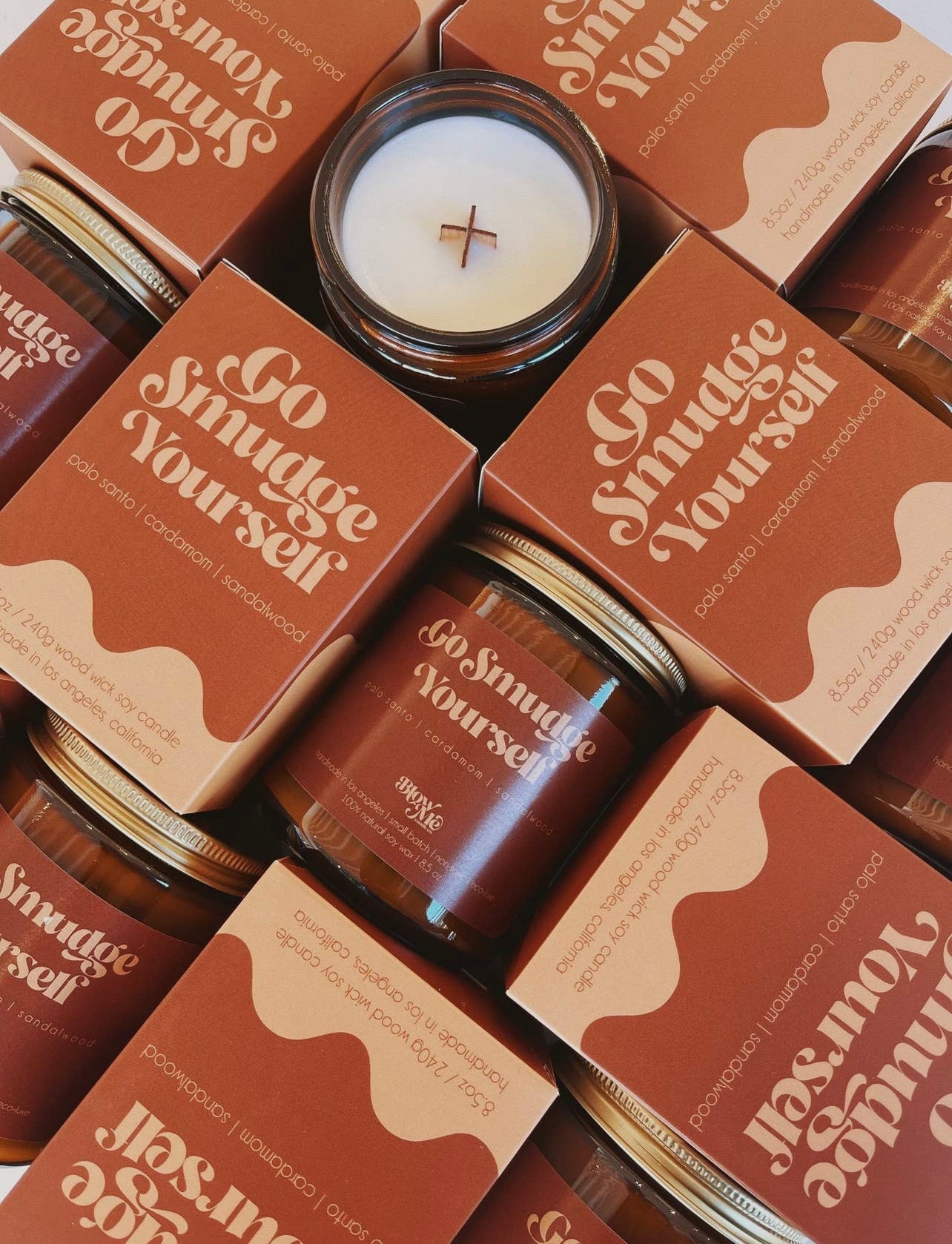 Notes of palo santo, cardomom, & sandalwood. 8.5 oz all-natural soy candle with a wood wick. Approximately 60 hours of burn time.