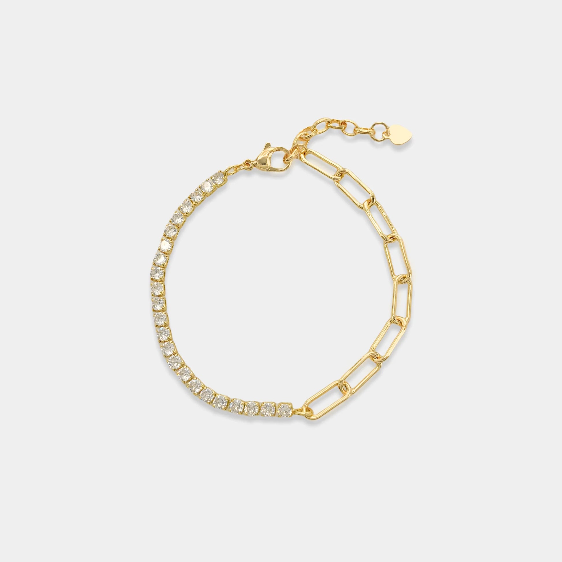 Ultratrendy 14k gold plated paperclip chain with cubic zirconia simulated diamonds bracelet is a