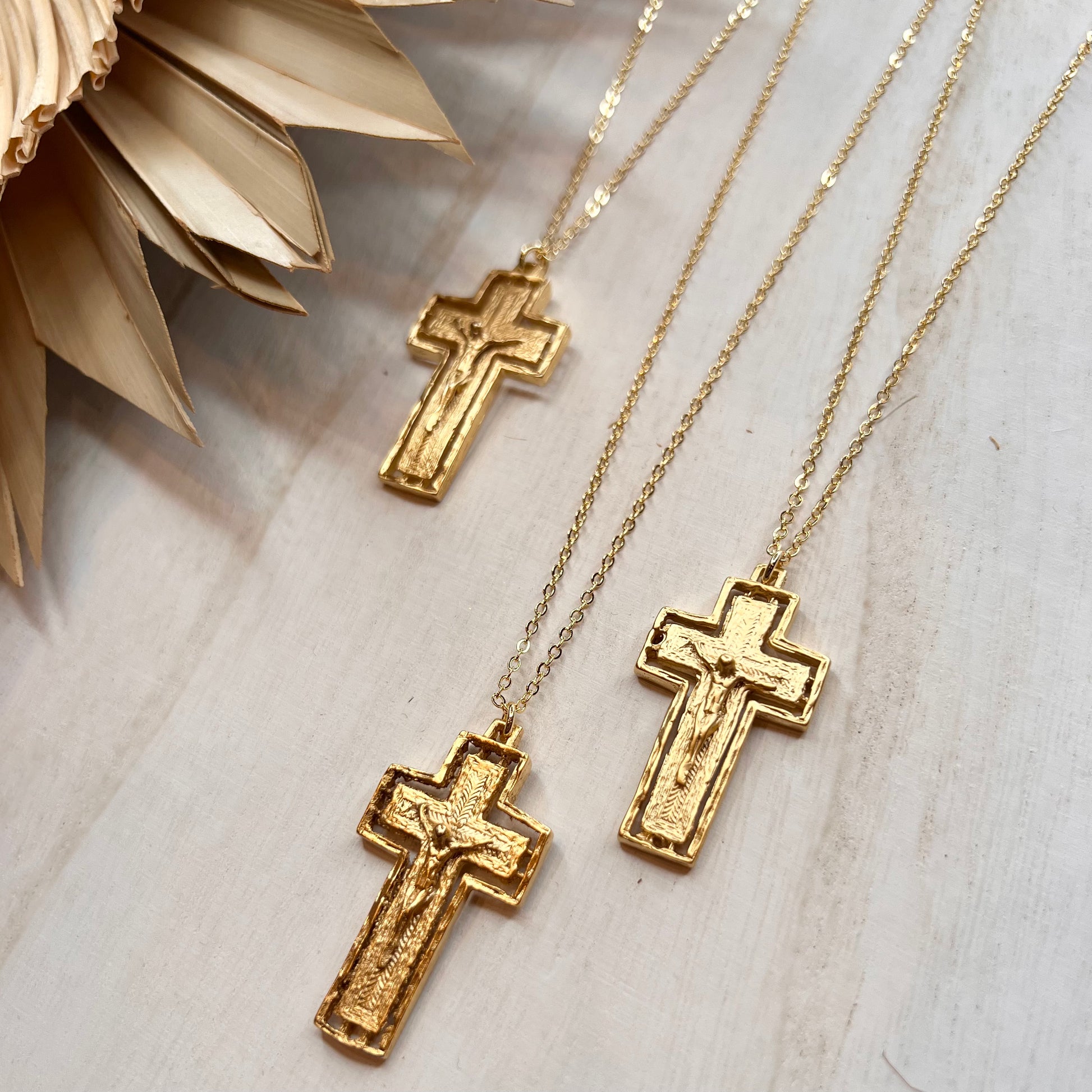 18K Gold Plated Bronze large organic halo outline Crucifix Necklace