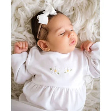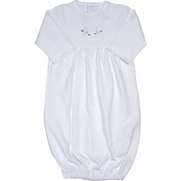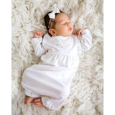 The Mallard convertible gown was designed with all of the fall events in mind. What better way to dress for family pics, game days, or fall festivals. Each Mallard and Cattail motif is intricately designed and hand embroidered using the most delicate touch. Comfortable enough to sleep in, and elegantly designed to wear during the day. This gender-neutral gown is made of the softest Pima cotton on the market. With the change of the snaps, this gown converts to a long one piece. Made of 100% Pima Cotton with a snap closure from the neck to the feet. The perfect gift to give and to also receive!