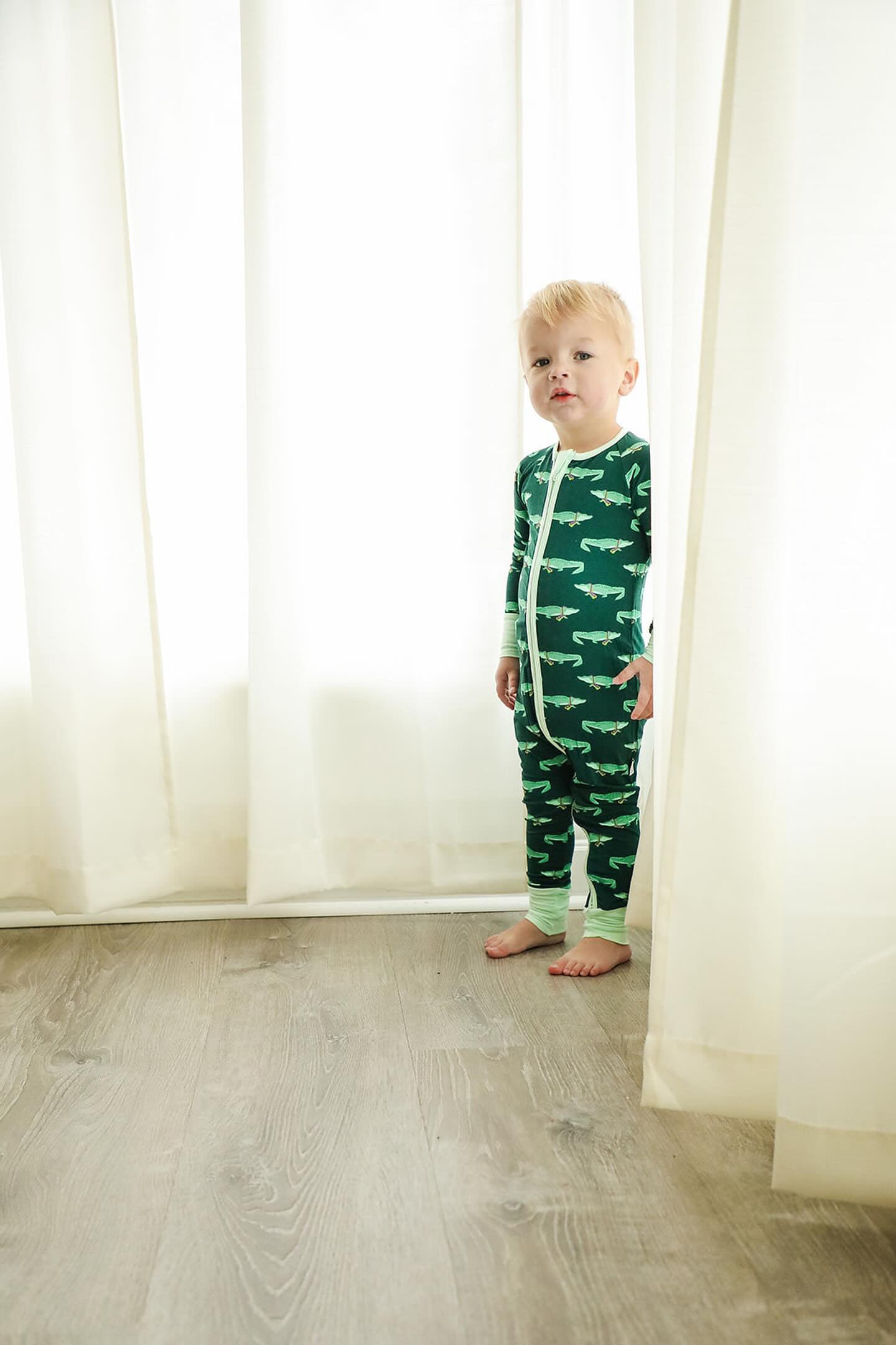 Our double zipper sleepers are made of the softest material - viscose from bamboo! So gentle on skin and perfect for any season, which is great because these sleepers last much longer than your average pajamas due to bamboos amazing stretch abilities. Our Oyster pattern was created to be a gender neutral classic design that's sure to become a bedtime staple for your little!