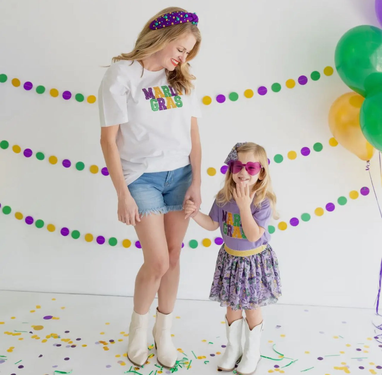 The Mardi Gras Tutu is a fun skirt and dress up tutu for any Mardi Gras celebration or everyday wear!