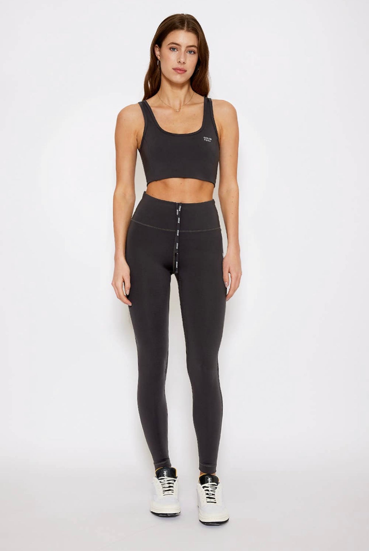 High waist and back V-yoke legging, athletic-inspired front string design, hidden waistband pocket,