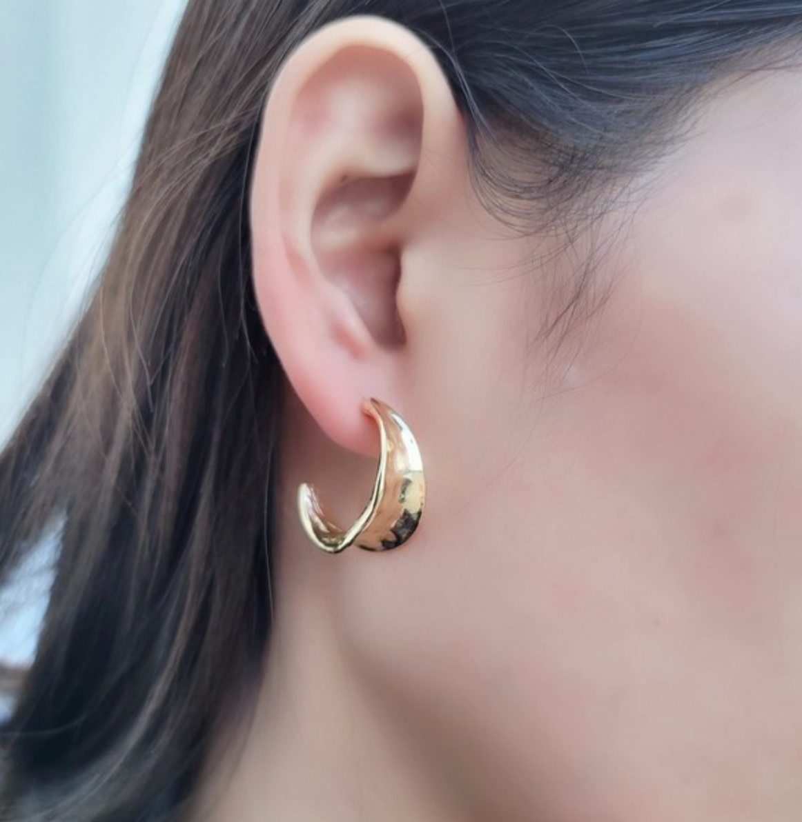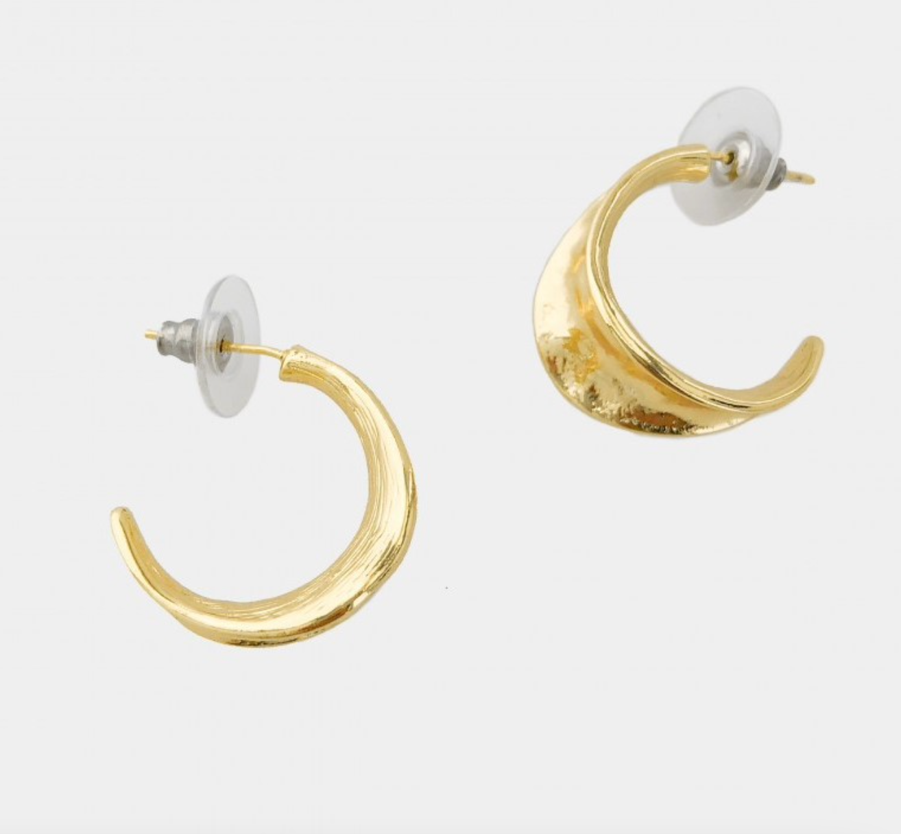 Textured moon-shaped earrings. Slide the earring post into your ears and secure it with the push-back backing.