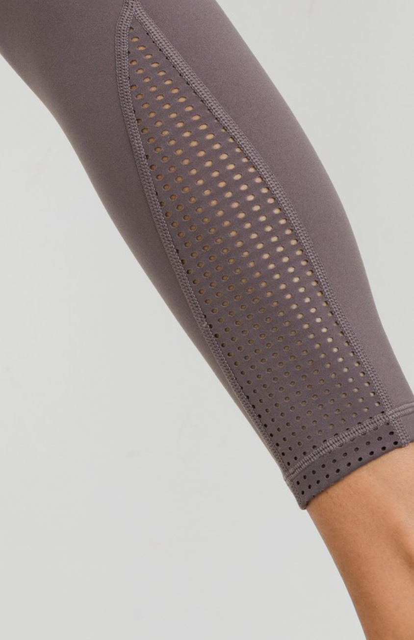 These HIIT-friendly performance leggings offer elasticized high-waist band for abs support as well as laser-cut, perforated panels by the lower leg to ensure your skin stays cool during the most rigorous activities. Tummy control. Moisture-wicking. Four-way stretch.