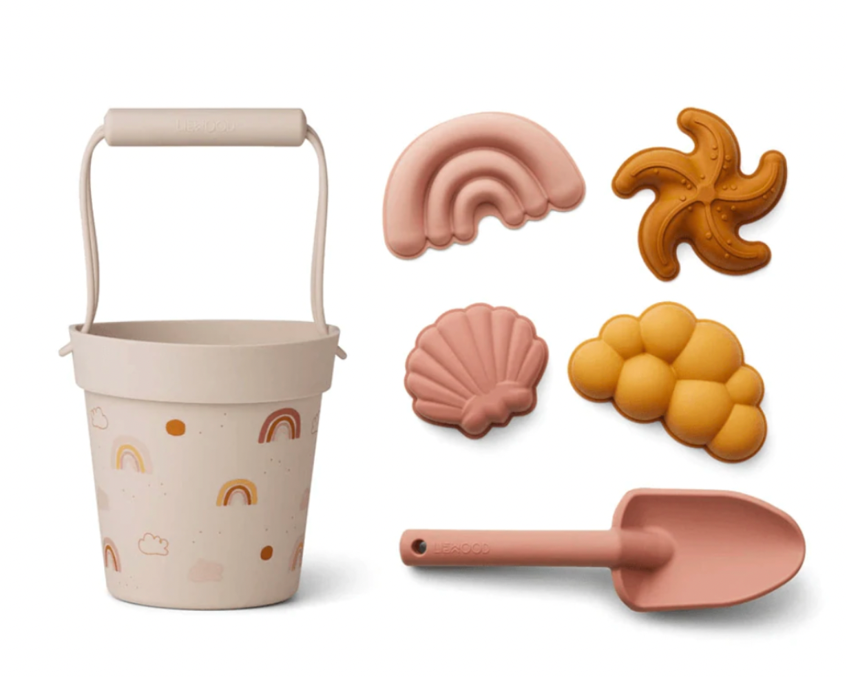 - The set includes: bucket with handle, shovel and four beach moulds shaped as your favourite friends