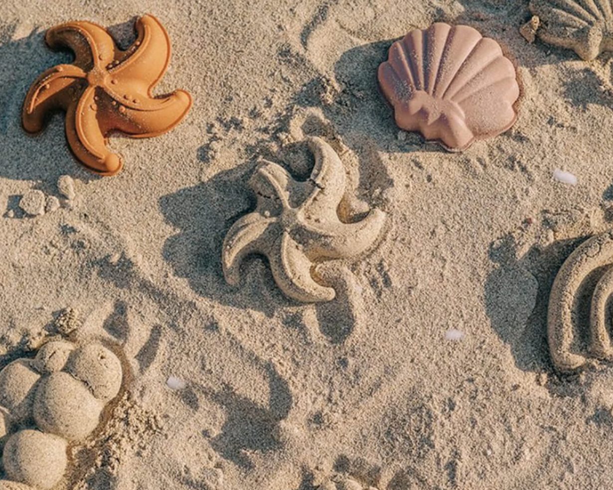- Dimensions: Bucket H: 14 cm x D: 10 cm / Shovel L: 22 cm x W: 6.5 cm / Moulds D: 8 cm