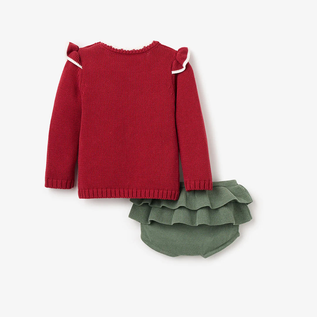 Red Santa Baby Ruffle Sleeve Sweater & Bloomer