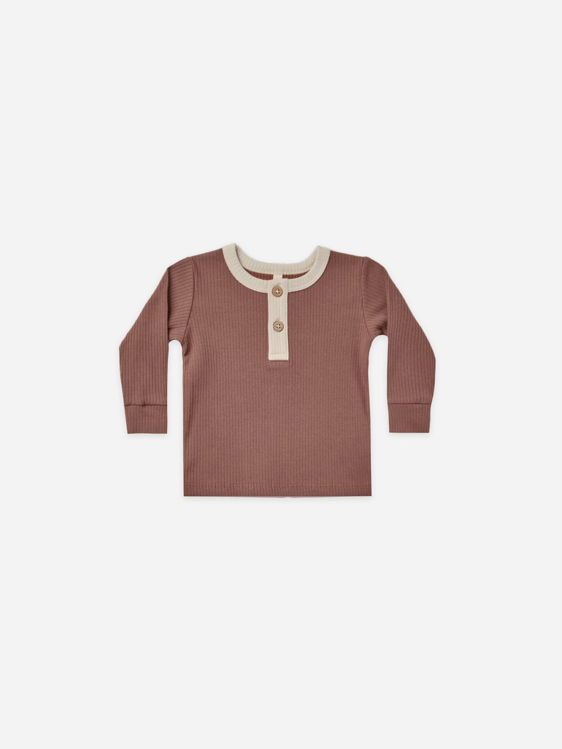 Ribbed Long Sleeve Henley & Pants (Pecan)