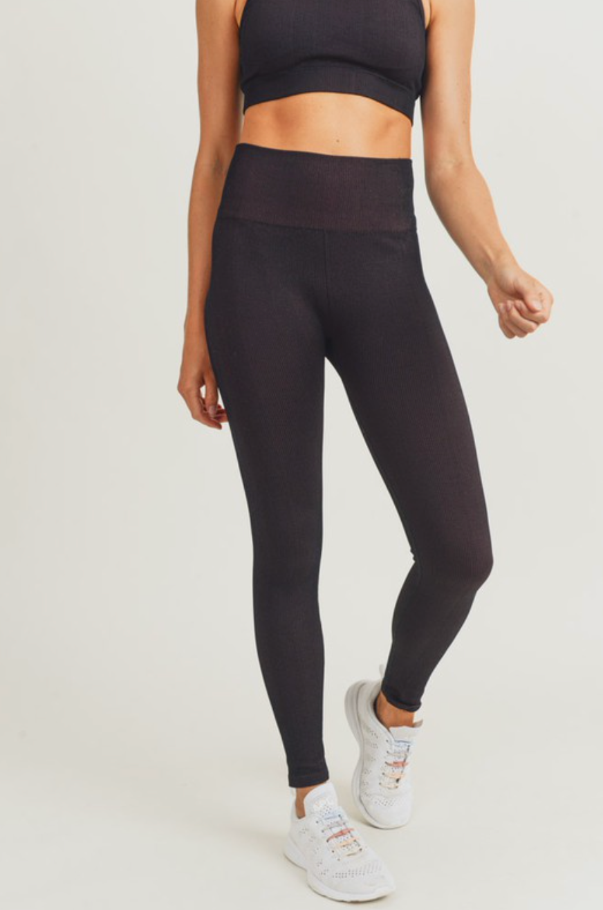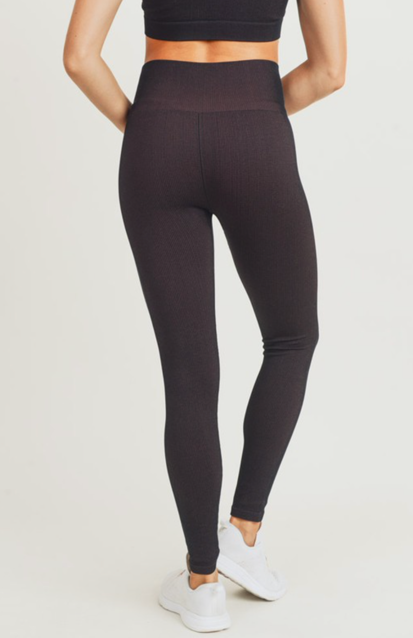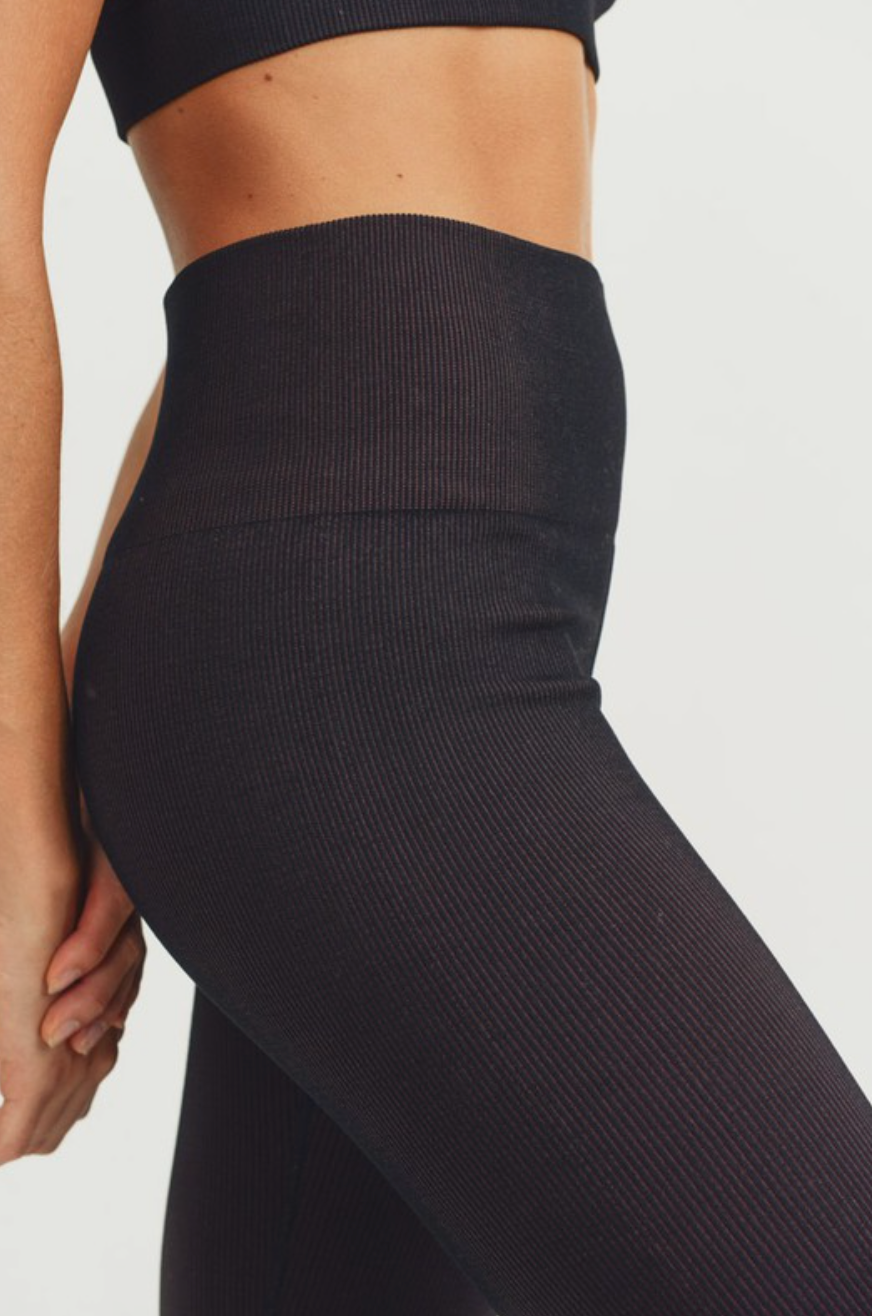 These seamless leggings have a ribbed outer texture and feature a two-tone, dry-brush effect for a gorgeous and subtle look. Seamless technology. Tummy control. Moisture-wicking. Four-way stretch.