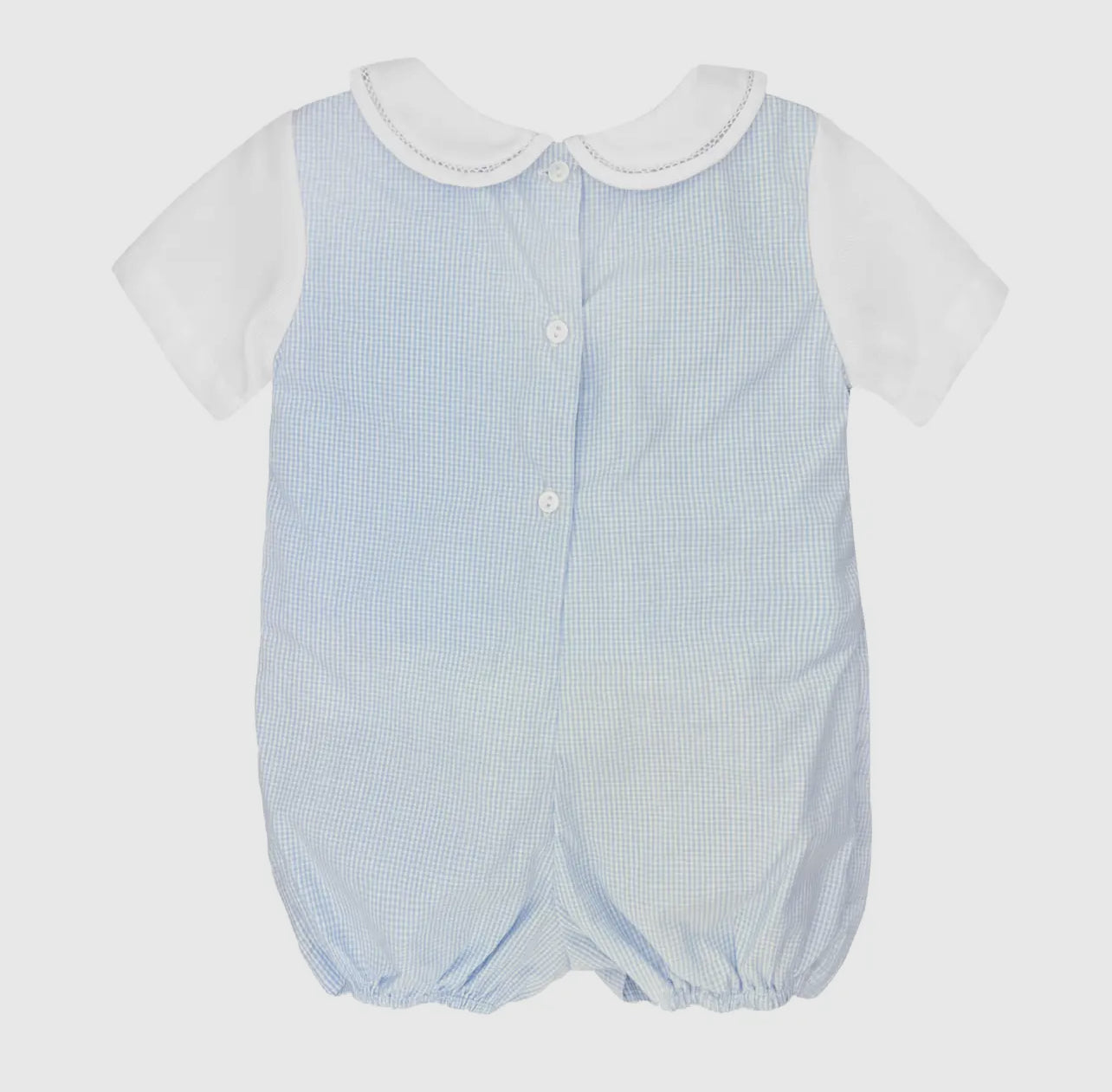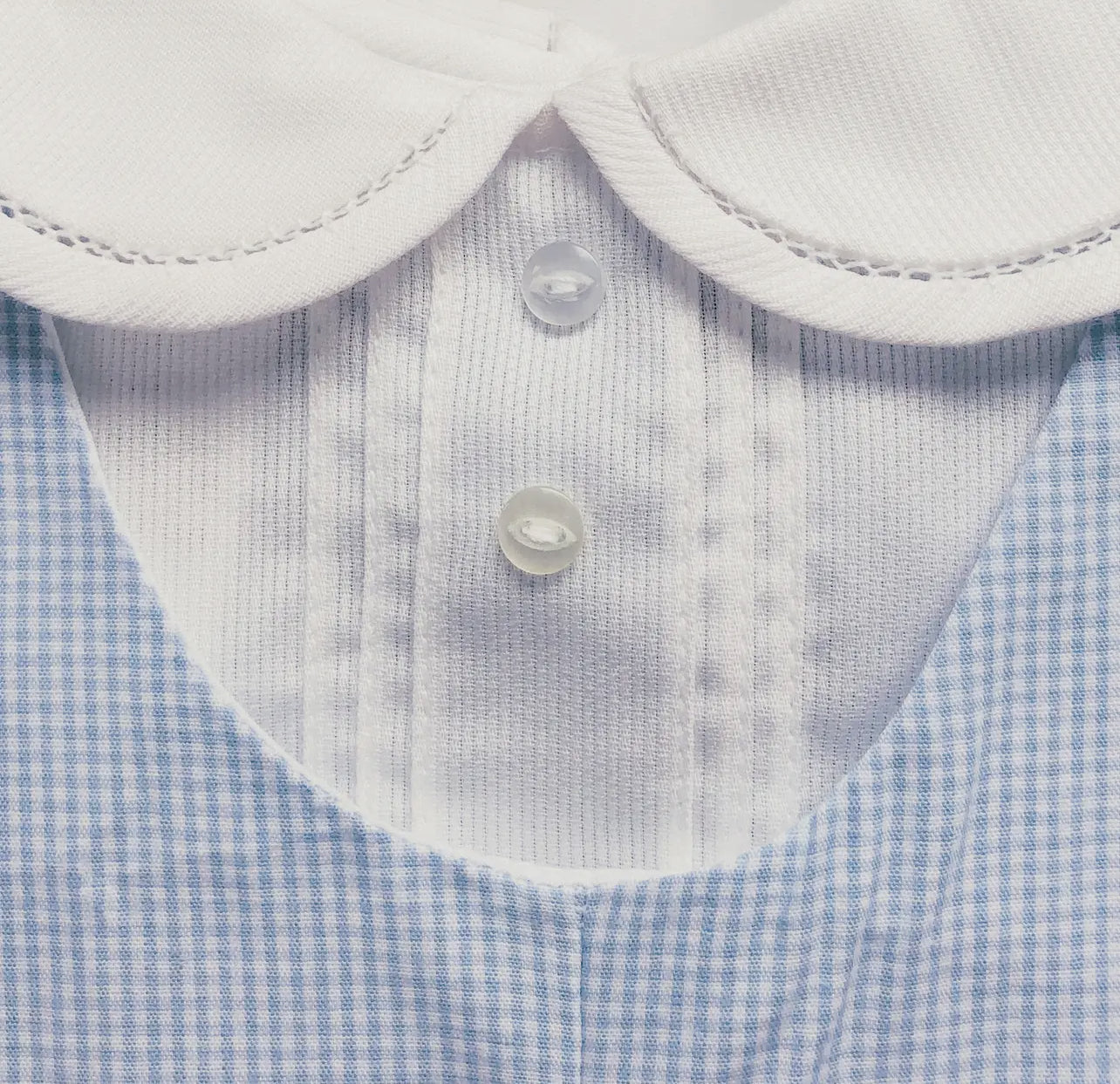 An heirloom quality French sewn romper with hand embroidery and delicate hand bridging stitch, this outfit is sure to become a treasured keepsake.