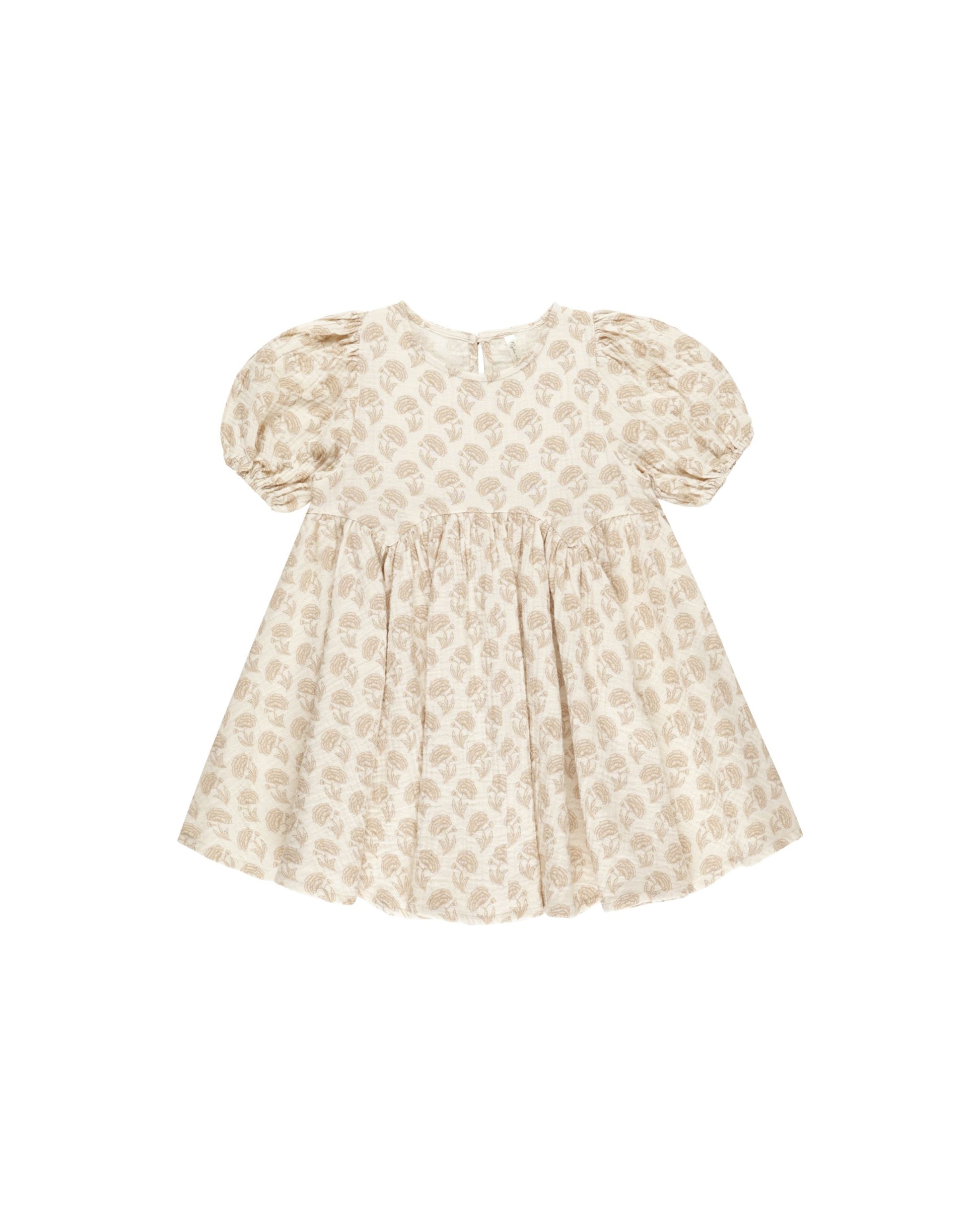 Twirl into fall with the adorable Rose Dress! This charming dress features gathered puff sleeves for a touch of whimsy and a scalloped waist seam for a flattering silhouette.