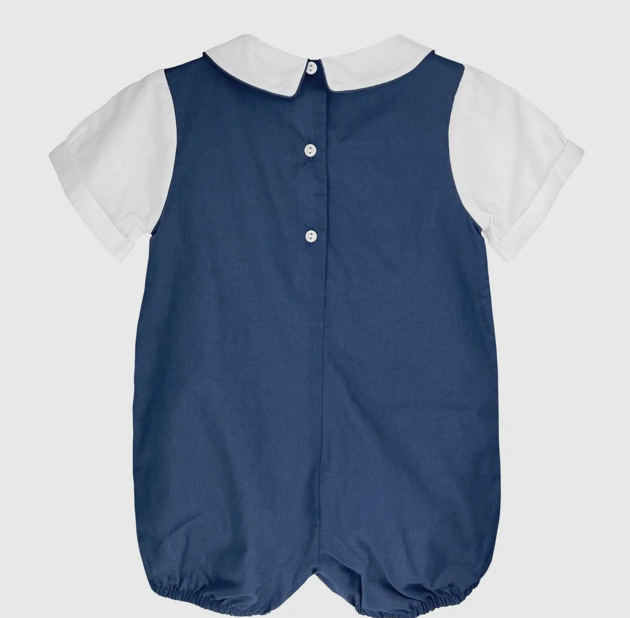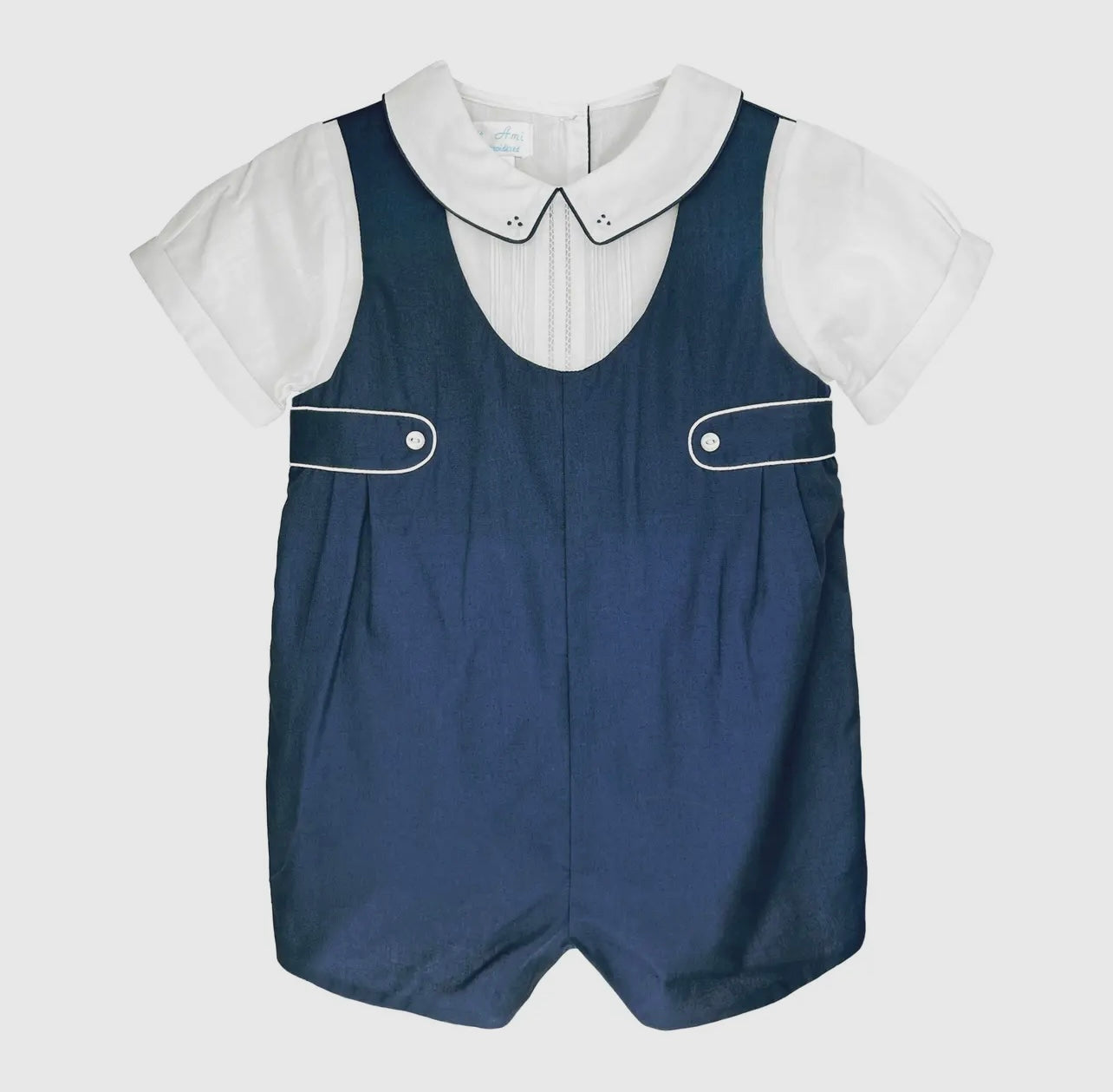Our traditional shortall romper looks like it has been handed down for generations and makes a beautiful outfit for family photos and special occasions.