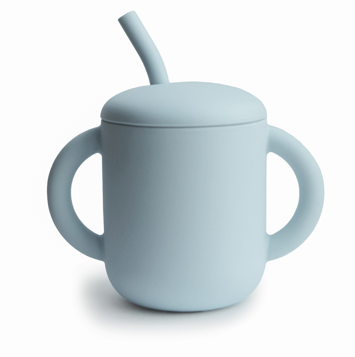 Silicone Training Cup + Straw may be cleaned by hand or in a dishwasher. To clean, wash with warm, soapy water and let air dry.