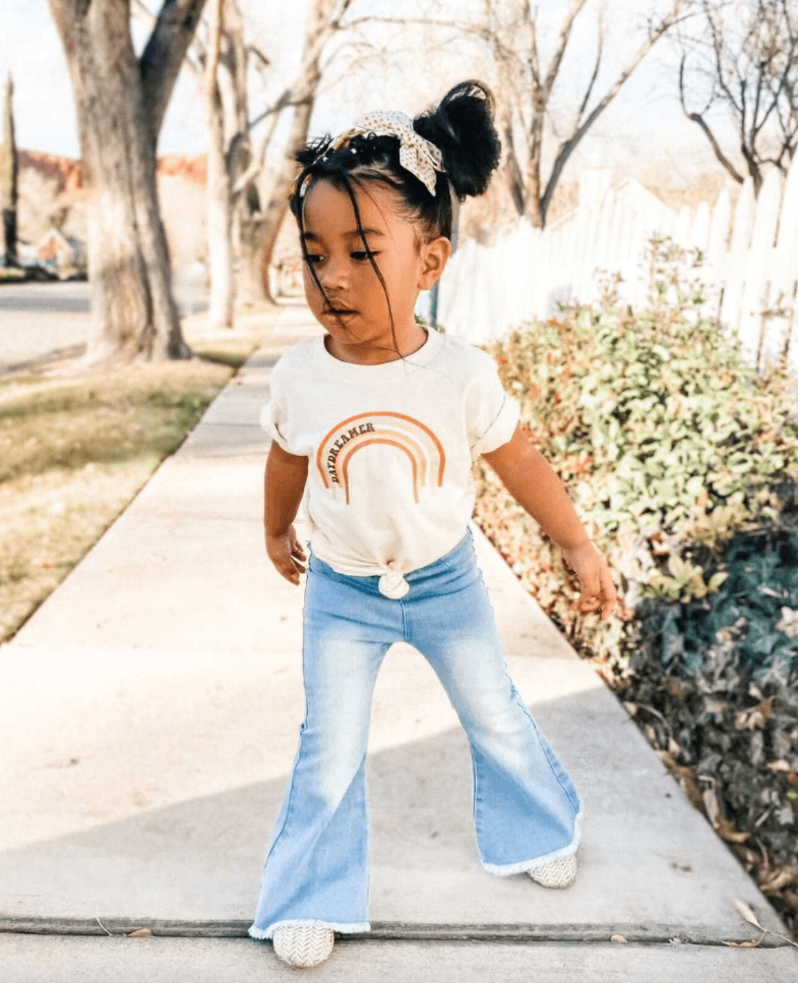 Retro, BB! The classic bell bottoms are here and they are your new favorite staple! Pair with one of our graphic tees, or a cute onesie to bring your mini's style to the next level. This light wash denim style has an elastic band to make it an easy and comfortable must-have!
