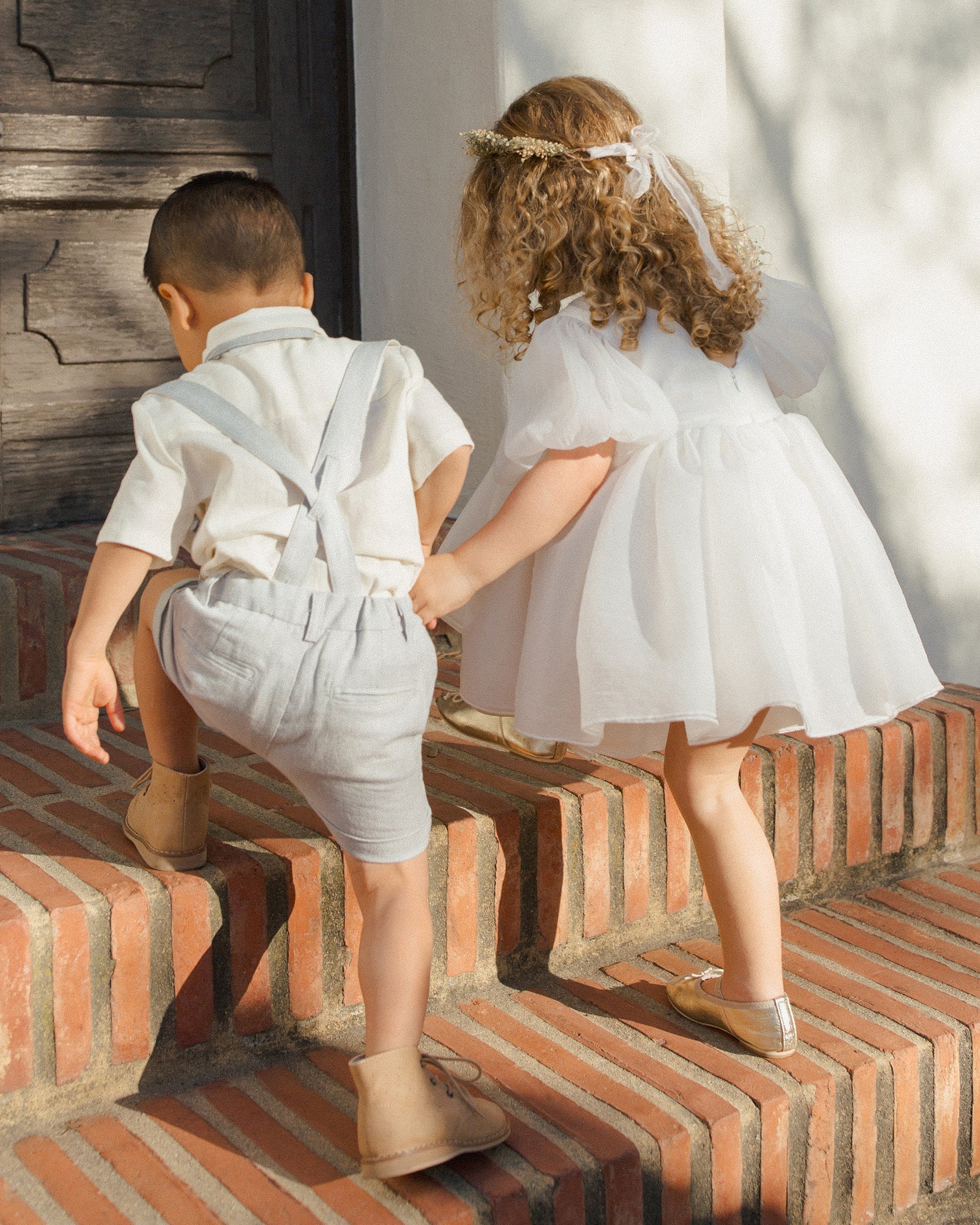 Our suspender shorts are the perfect staple piece for your little guy this spring! Effortless with button straps, an elasticized back waist, and pockets.