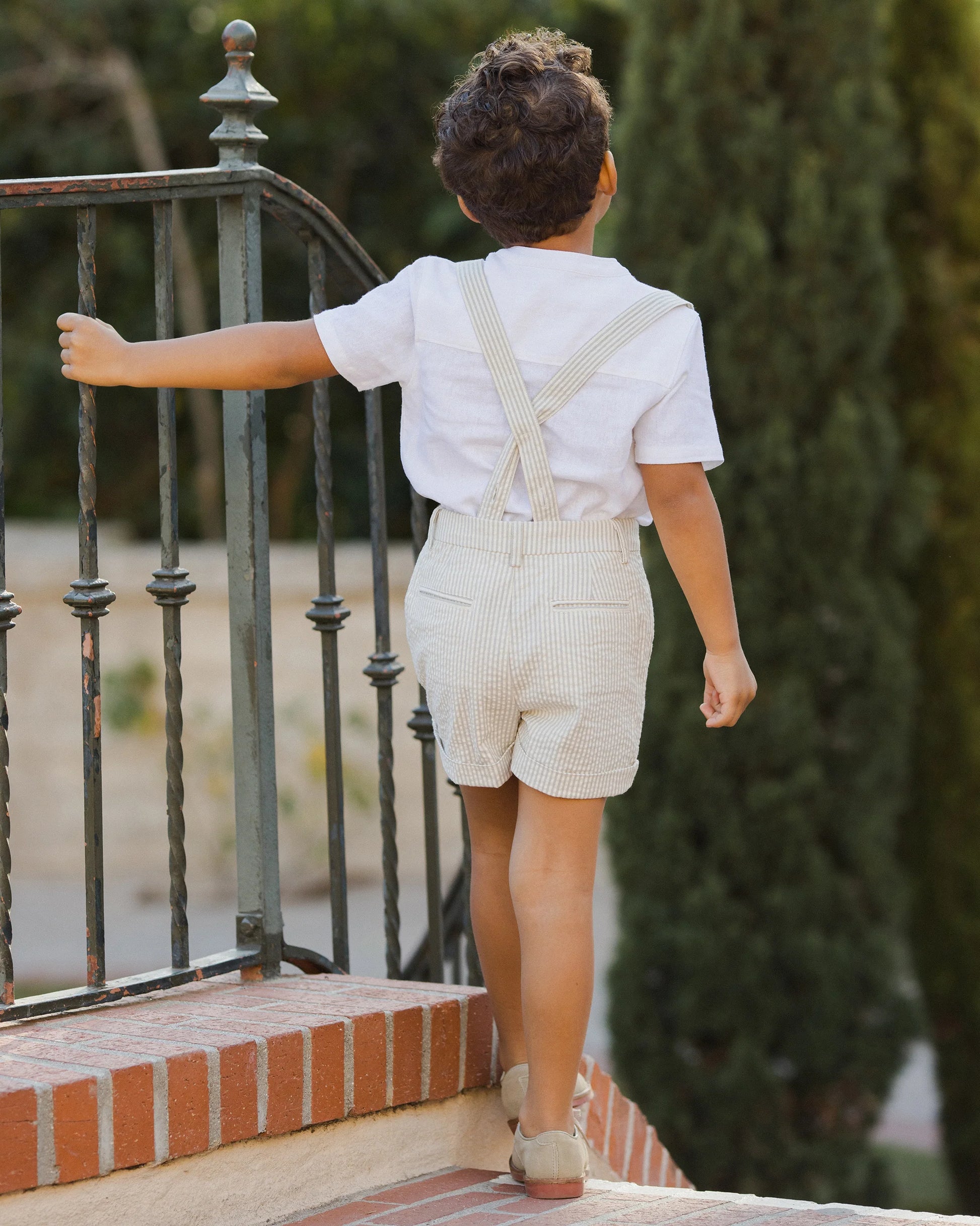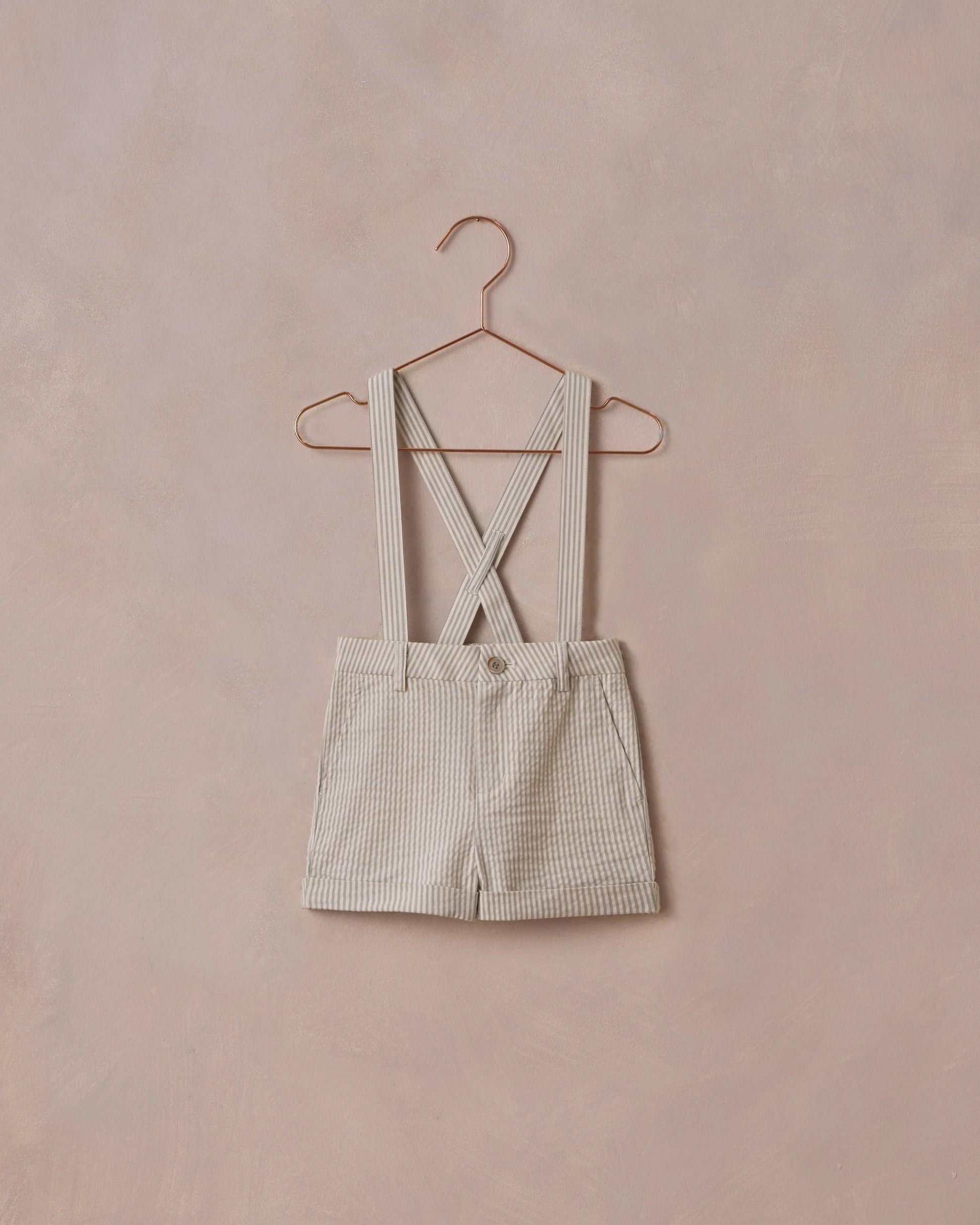 Our suspender shorts are the perfect staple piece for your little guy this spring! Effortless with button straps, an elasticized back waist, and pockets.