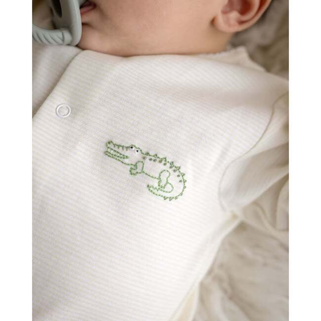 Buttery soft long sleeve gown in yellow jersey fabric with an intricately hand embroidered design. The perfect gown for sensitive newborn skin